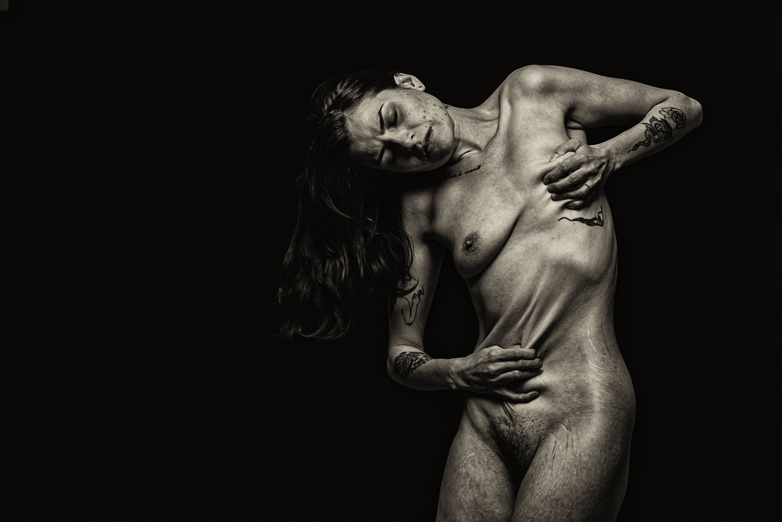 Until this year, I have gone 30 years of untreated physical illness and pain, being dismissed as psychosomatic, or an overreaction to something “normal”. I first shot with Jocelyn 2 years ago in 2021. A part of me was desperate to step away from my normal “beautiful” modelling work. I was over people only seeing me or my life as desirable. I felt a need to share my reality, and the toll hiding it all took on me.